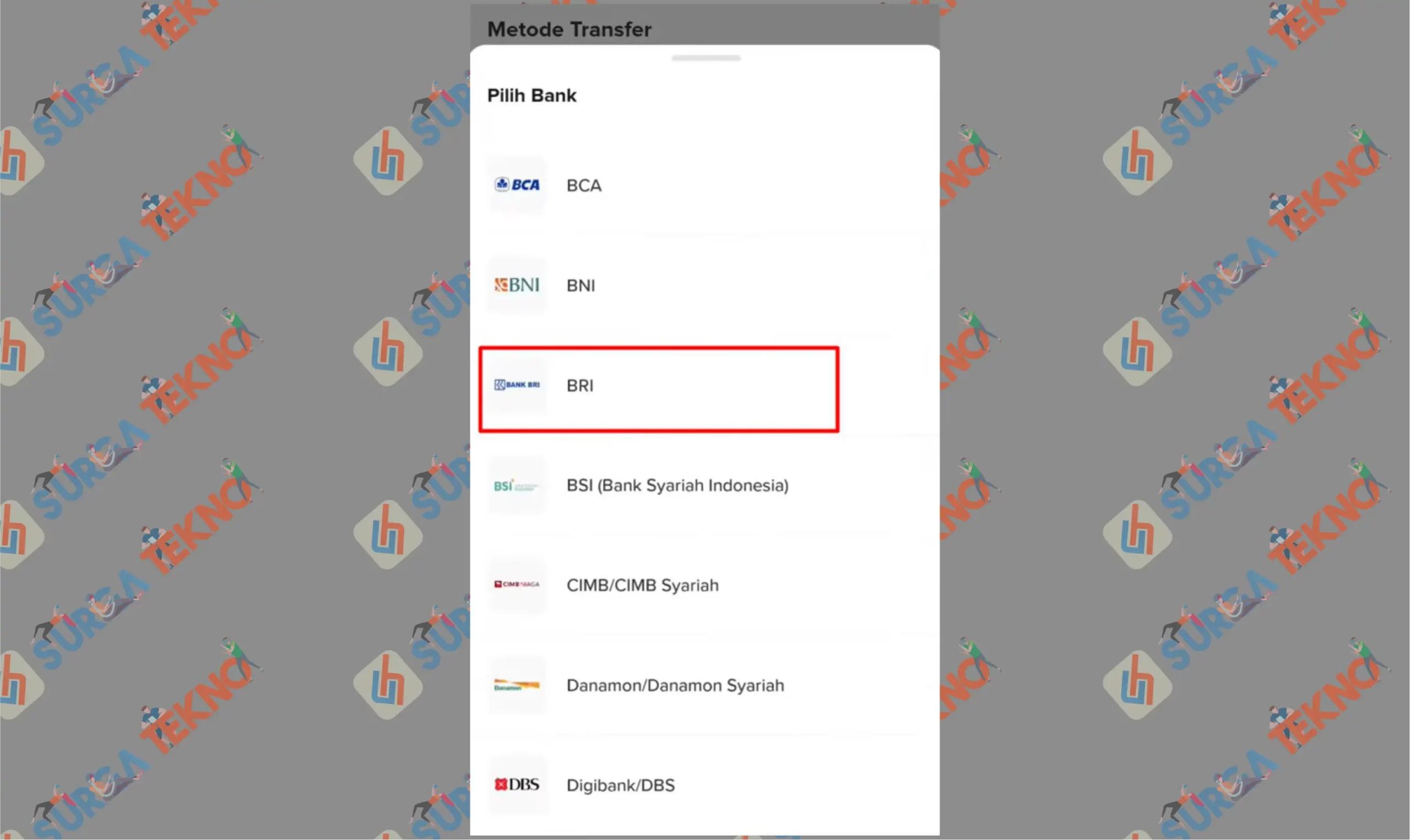 - Jika pilih Rekening Bank BRI, maka pilih bank yang kamu gunakan.