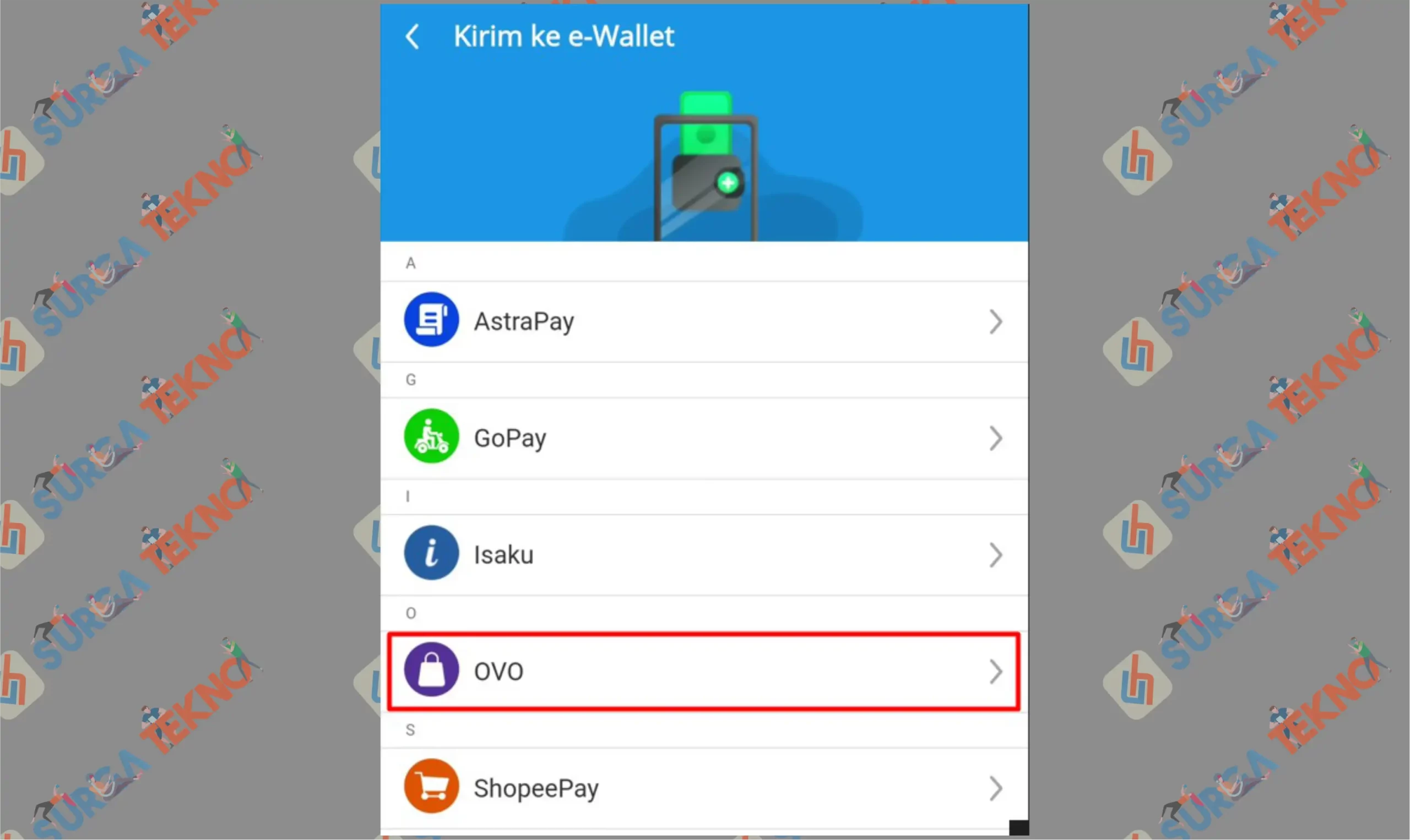 - Tersedia beberapa platform e-Wallet, akan kami contohkan disini mengirim ke OVO.