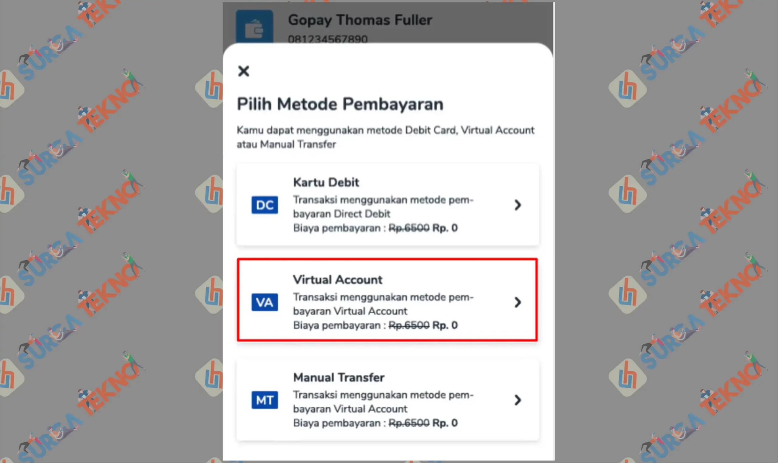 - Nanti akan ditawarkan metode pembayaran, pilih salah satu misalnya Virtual Account.