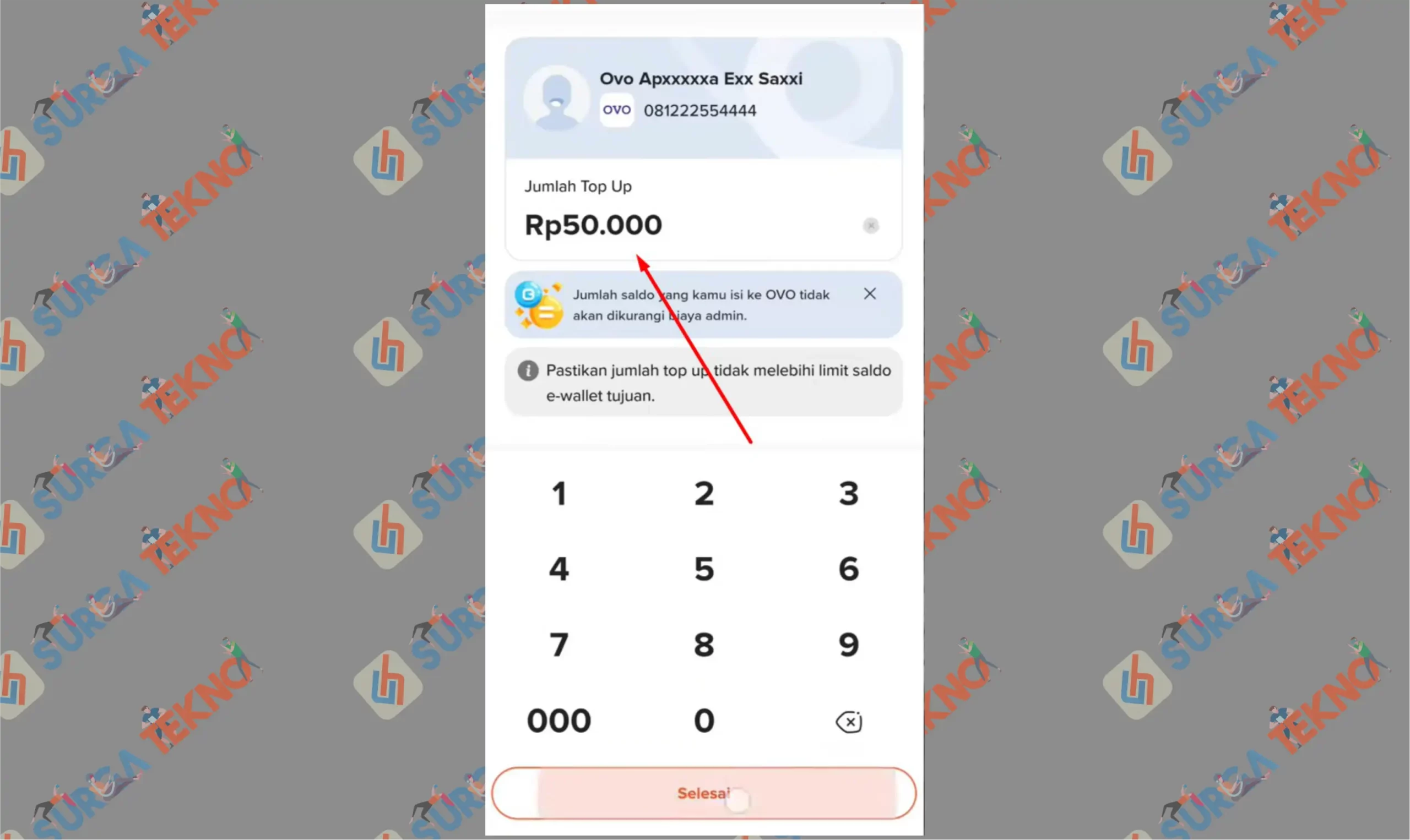 - Lanjut masukkan nominal Top-up untuk transfer uang.